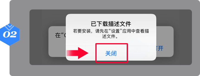 描述文件下载,点击【关闭】